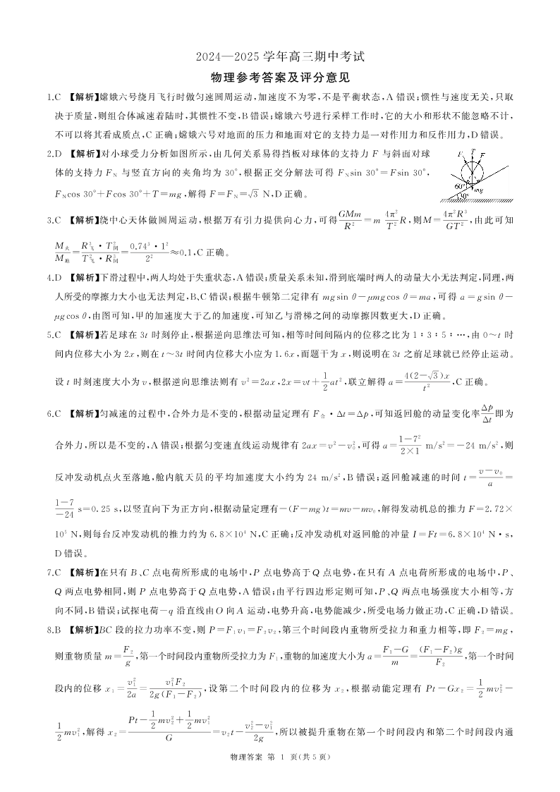 山东省百师联考2024-2025学年高三年级上学期期中质量检测 物理答案