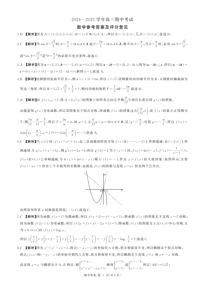 山东省百师联考2024-2025学年高三年级上学期期中质量检测 数学答案