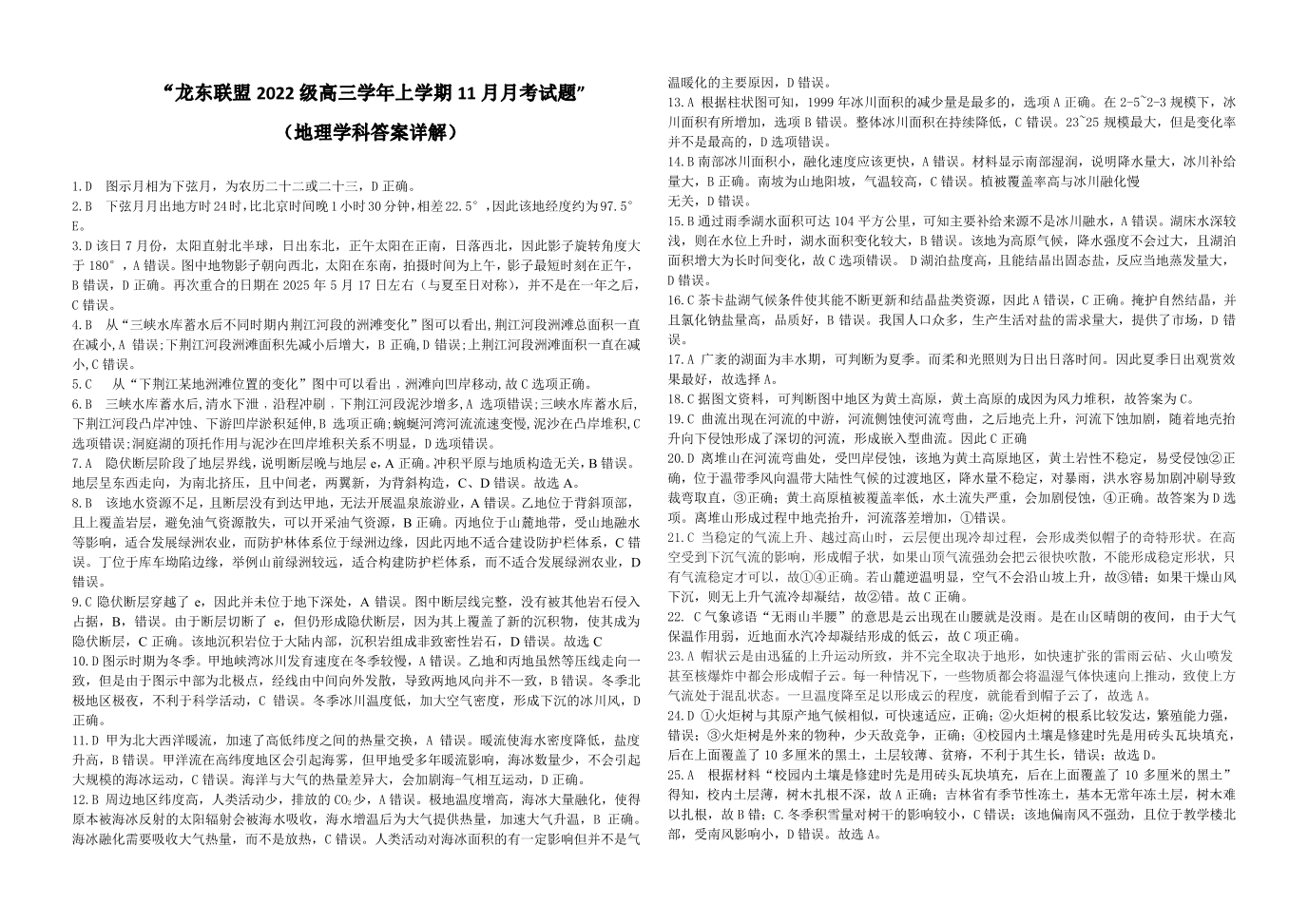 黑龙江省龙东联盟2024-2025学年高三上学期11月月考 地理答案