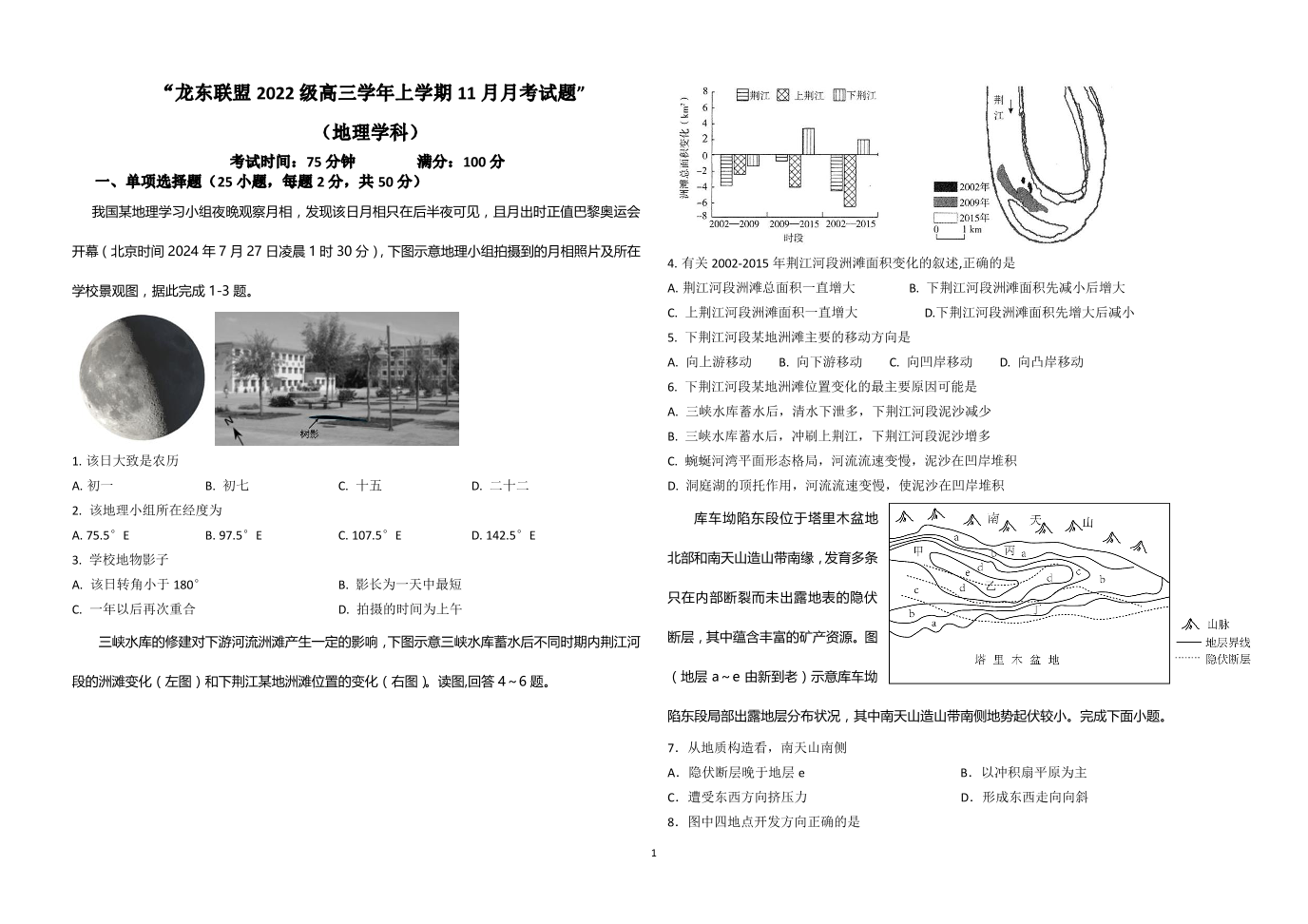 黑龙江省龙东联盟2024-2025学年高三上学期11月月考 地理