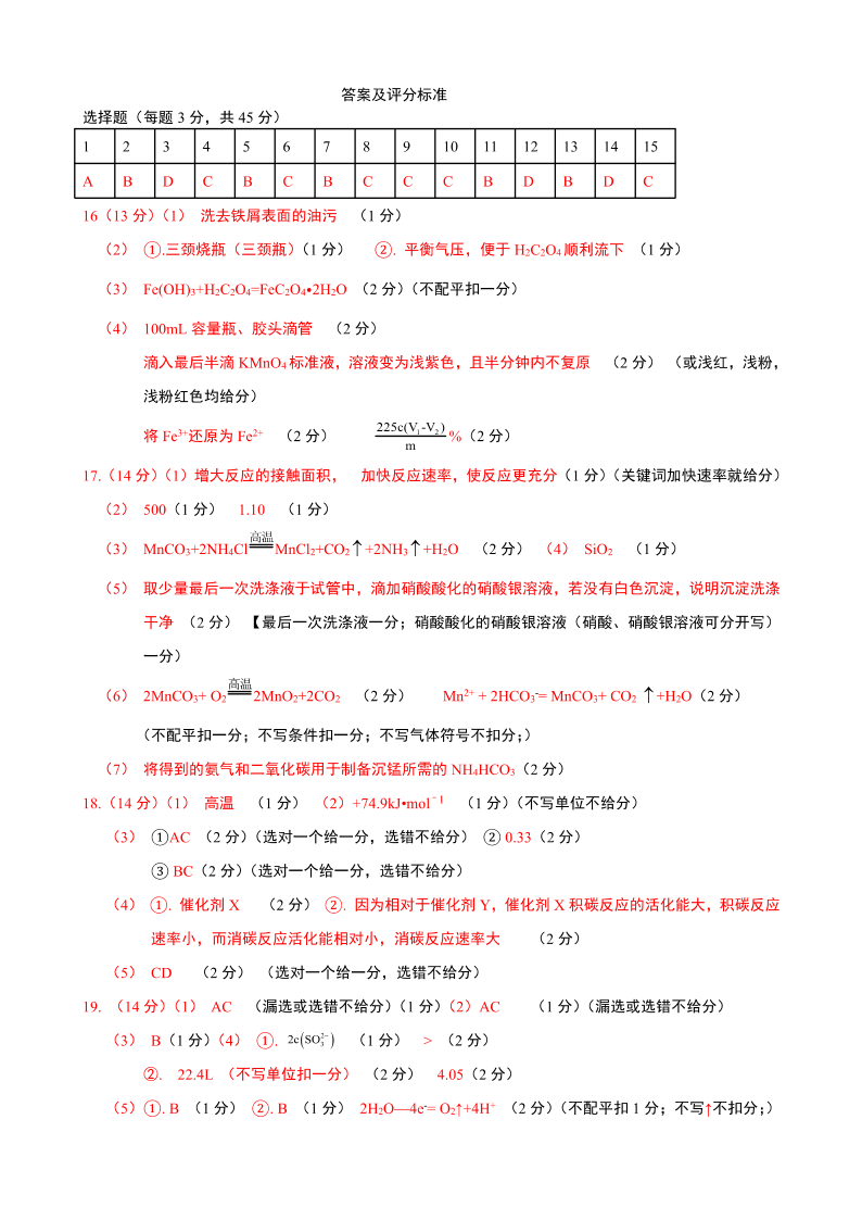 黑龙江省龙东联盟2024-2025学年高三上学期11月月考 化学答案