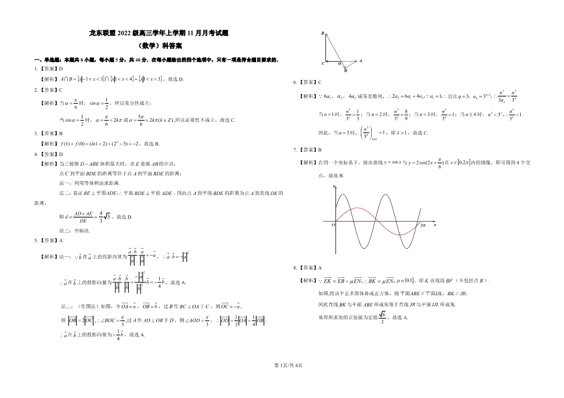 黑龙江省龙东联盟2024-2025学年高三上学期11月月考 数学答案