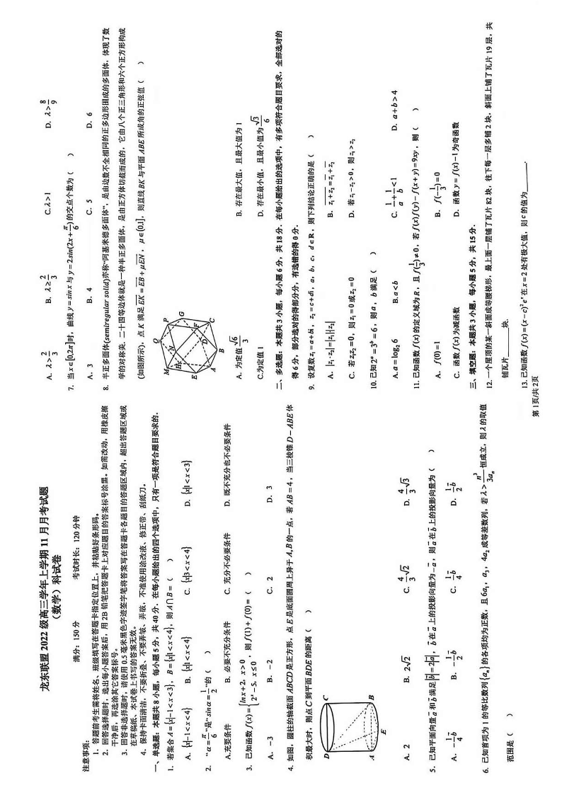黑龙江省龙东联盟2024-2025学年高三上学期11月月考 数学