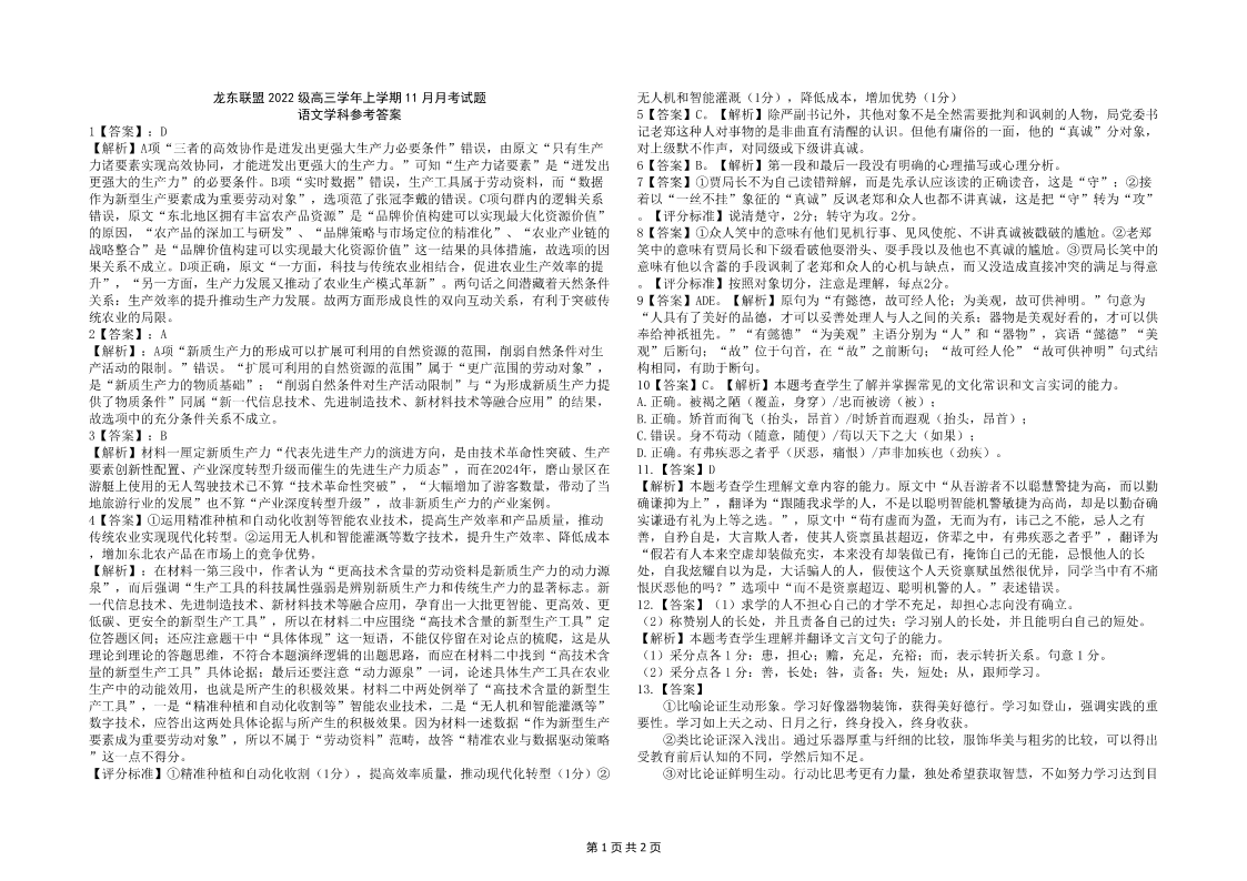黑龙江省龙东联盟2024-2025学年高三上学期11月月考 语文答案