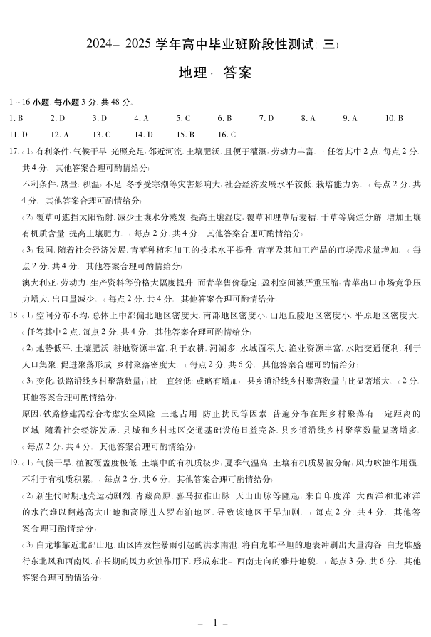 2025届河南天一大联考高三阶段性检测(三)地理答案