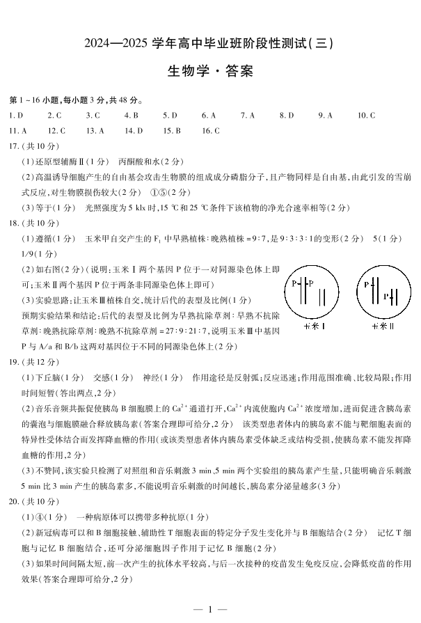 2025届河南天一大联考高三阶段性检测(三)生物答案