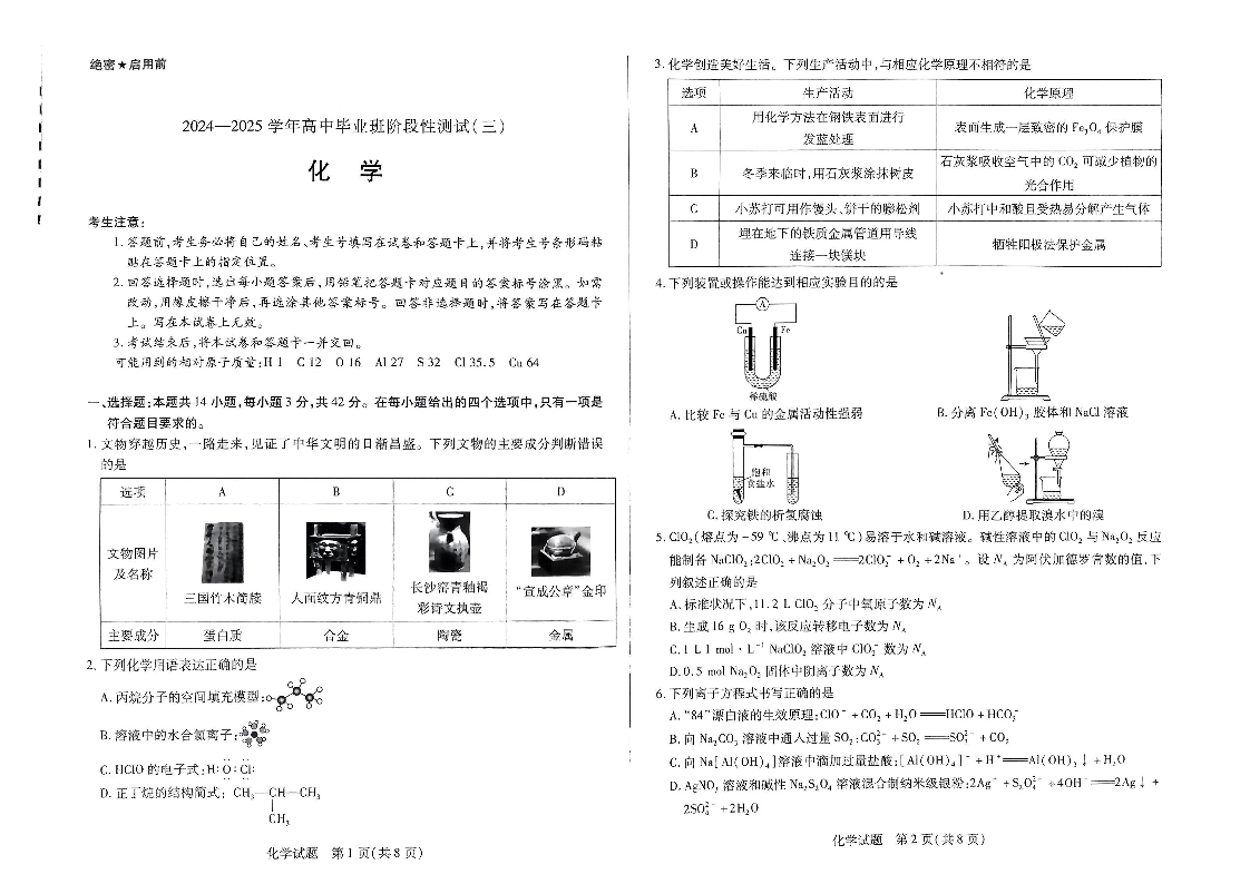 2025届河南天一大联考高三阶段性检测(三)化学