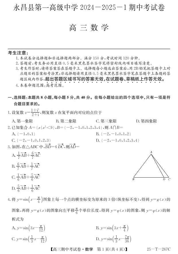 甘肃省永昌县第一高级中学2024-2025学年高三上学期期中考试 数学