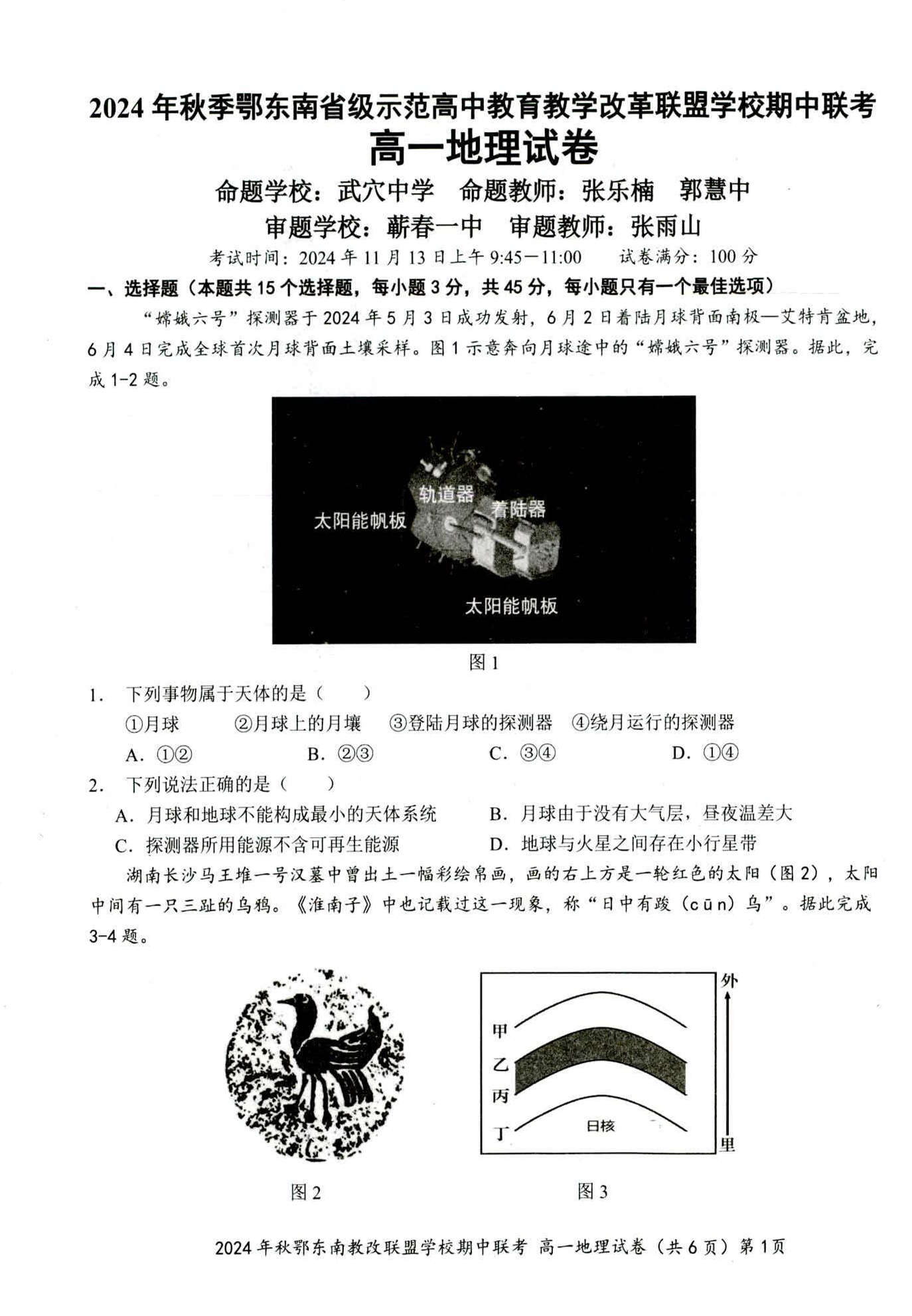 2024年秋季鄂东南联盟学校高一年级期中联考 地理
