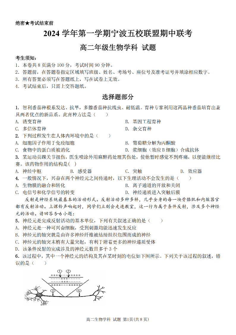 生物卷-宁波五校高二期中