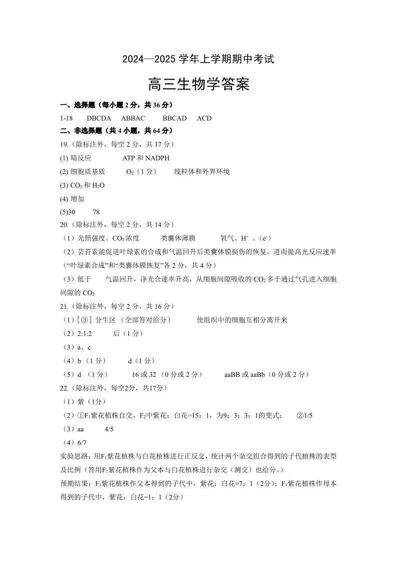 湖北省新高考协作体2024-2025学年高三上学期11月期中考试 生物答案