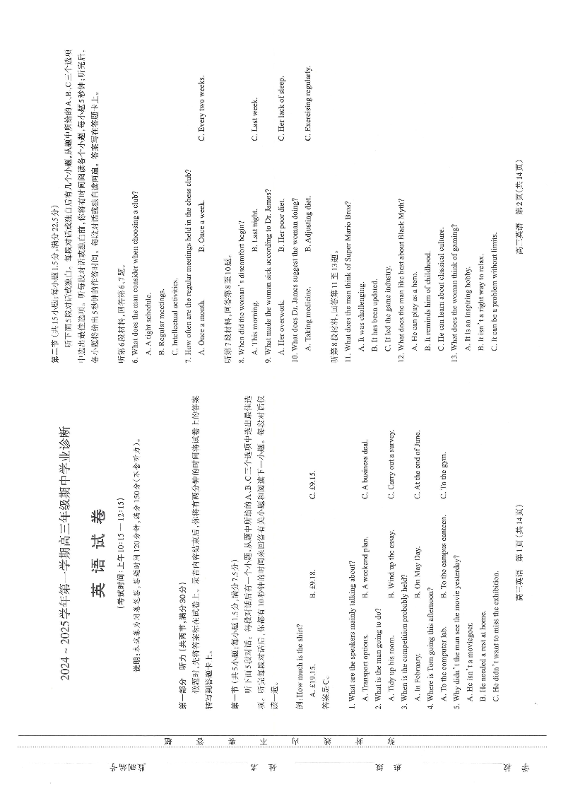 山西省太原市2024-2025学年高三年级第一学期期中测评 英语