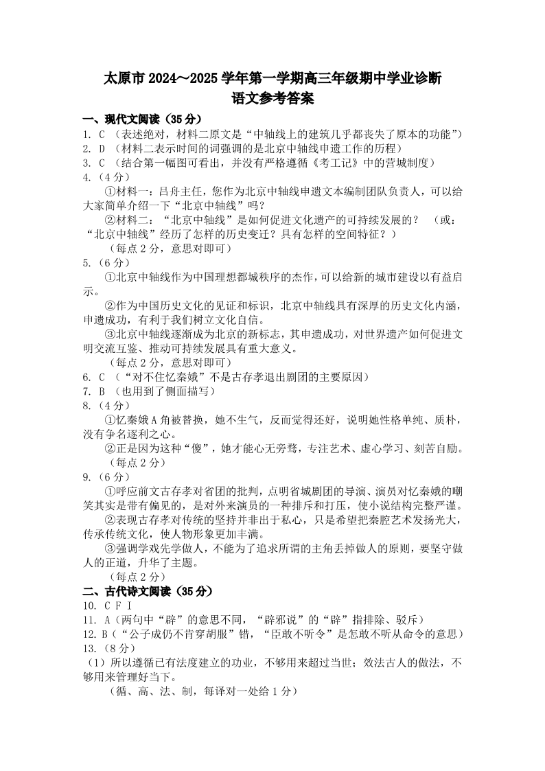 山西省太原市2024-2025学年高三年级第一学期期中测评 语文答案