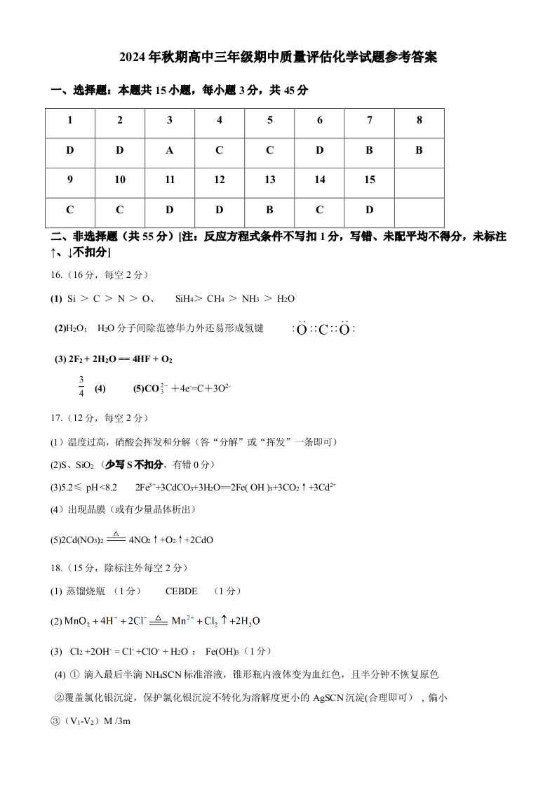 河南省南阳市2024-2025学年高三上学期11月期中考试 化学答案