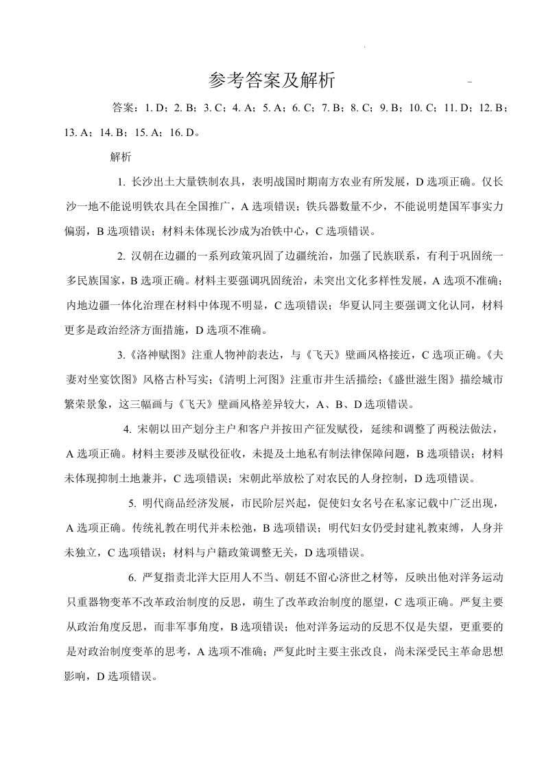 河北省邢台市质检联盟2024-2025学年高三上学期期中考试 历史参考答案