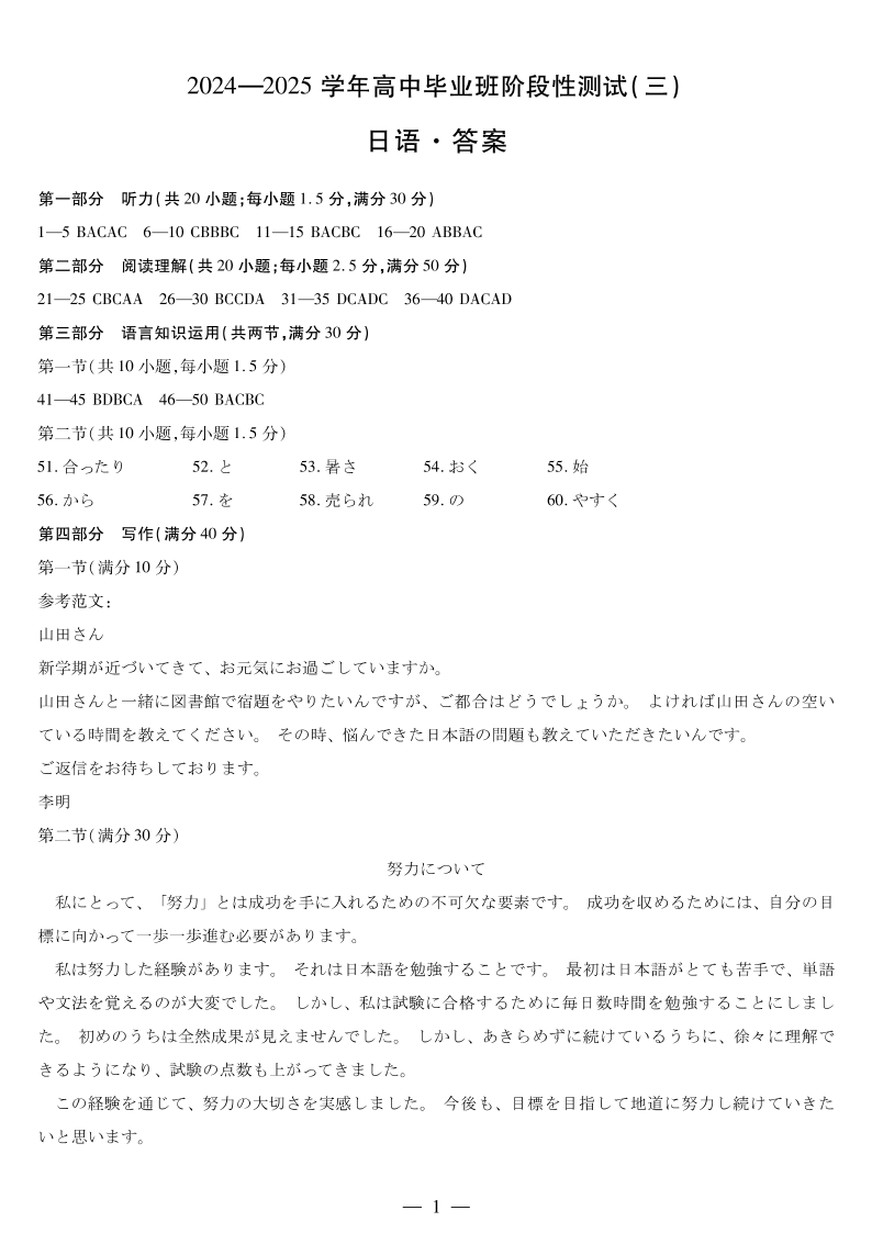 2025届河南天一大联考高三阶段性检测(三)日语答案