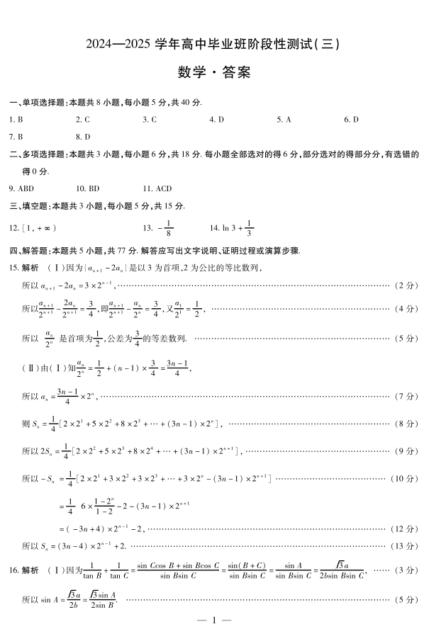 2025届河南天一大联考高三阶段性检测(三)数学答案