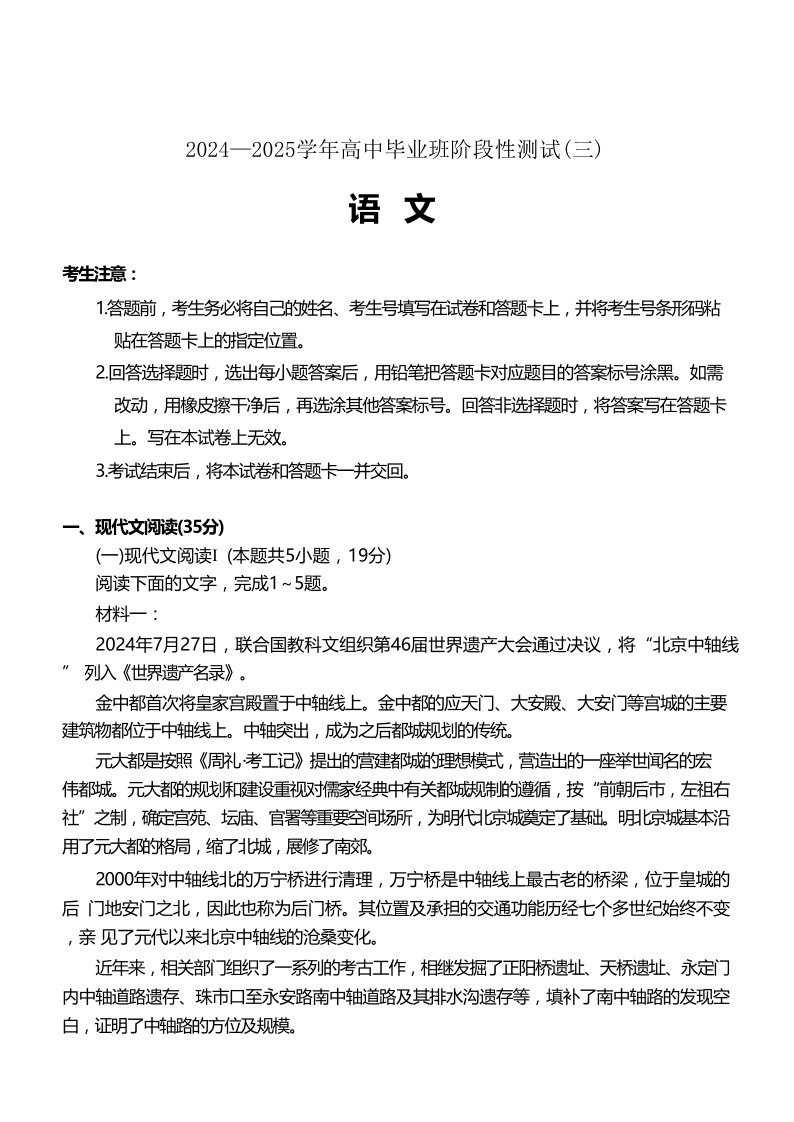 2025届河南天一大联考高三阶段性检测(三)语文
