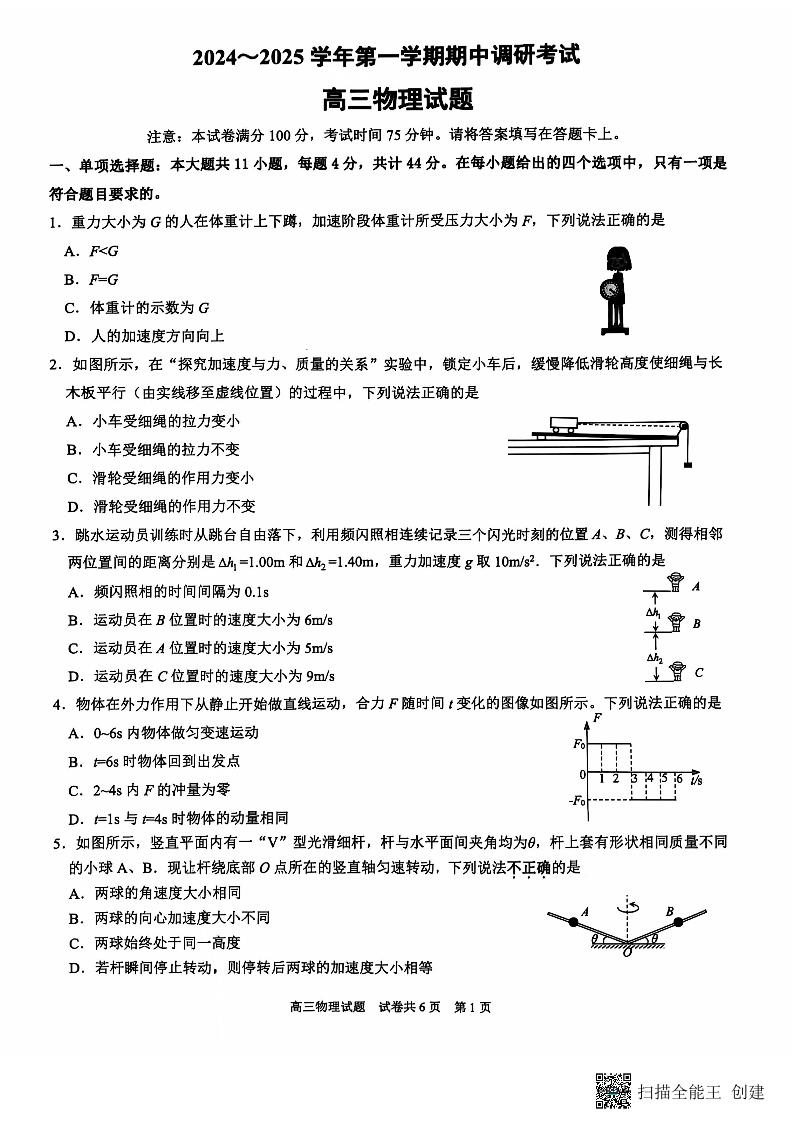 连云港市2024-2025学年高三上学期期中考试 物理