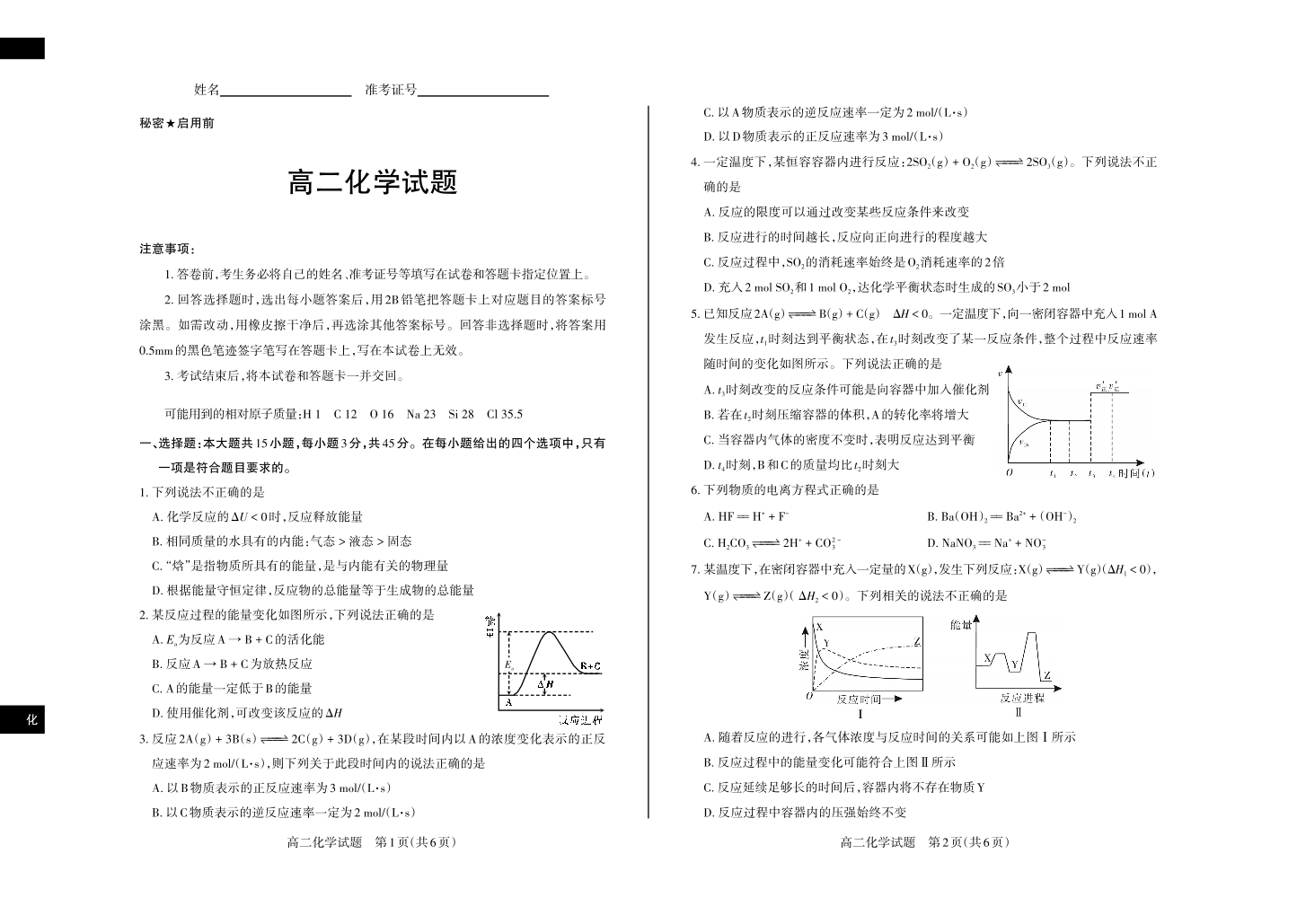 化学 2024-2025高二第一学期期中考试