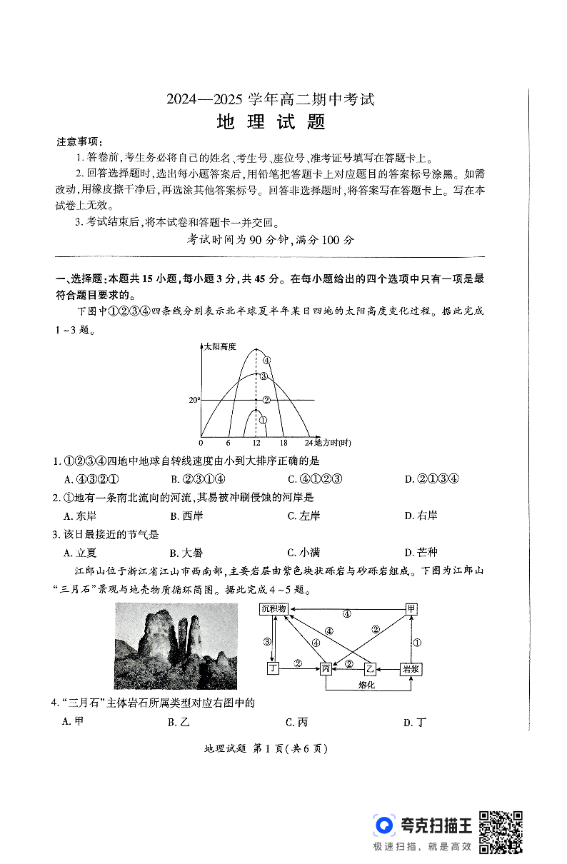 山东省百师联考2024-2025学年高二上学期期中考试 地理