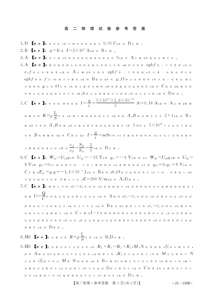 四川省雅安中学2024-2025学年高二上学期11月期中考试 物理答案