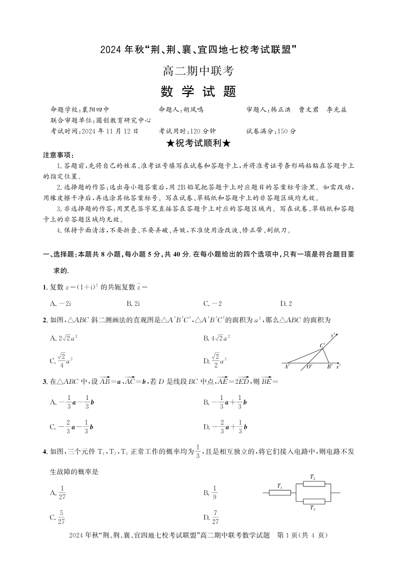2024年秋“荆、荆、襄、宜四地七校考试联盟”高二年级期中联考 数学