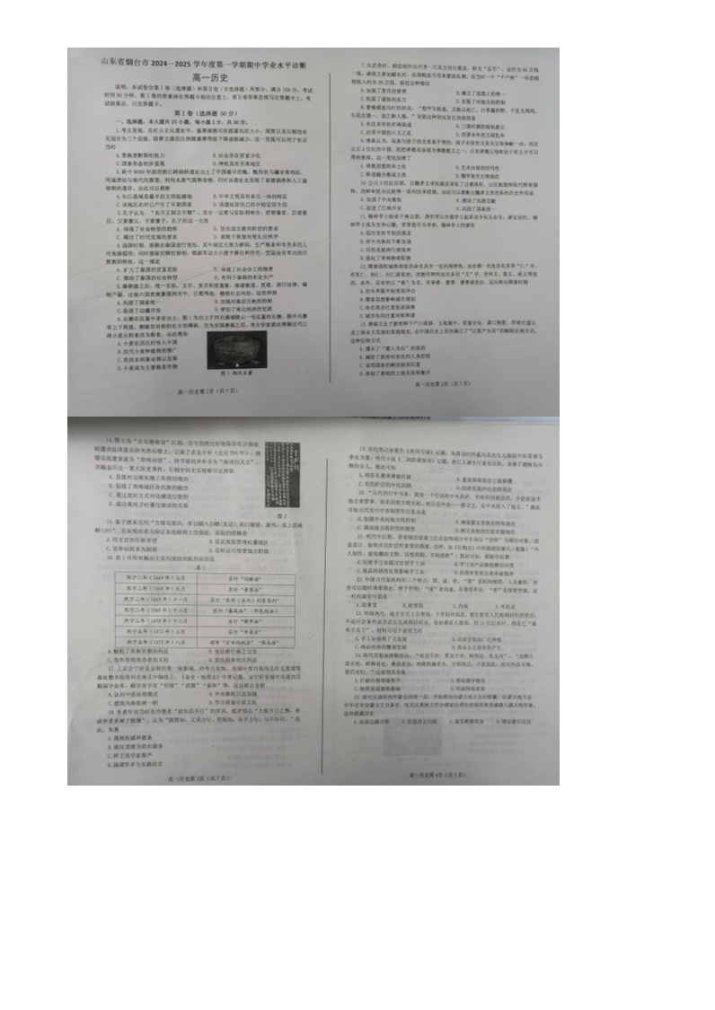 山东省烟台市2024-2025学年高一上学期11月期中考试 历史