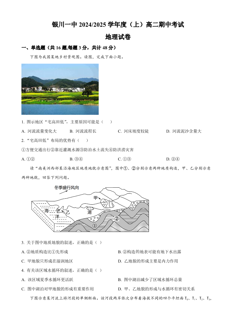宁夏回族自治区银川一中2024-2025学年高二上学期期中考试 地理