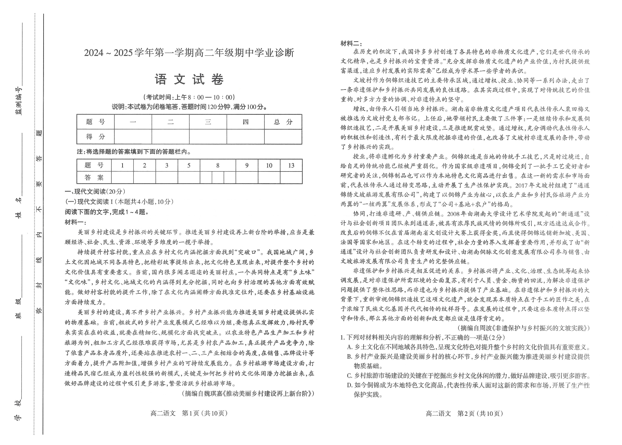 山西省太原市2024-2025学年高二上学期11月期中考试 语文