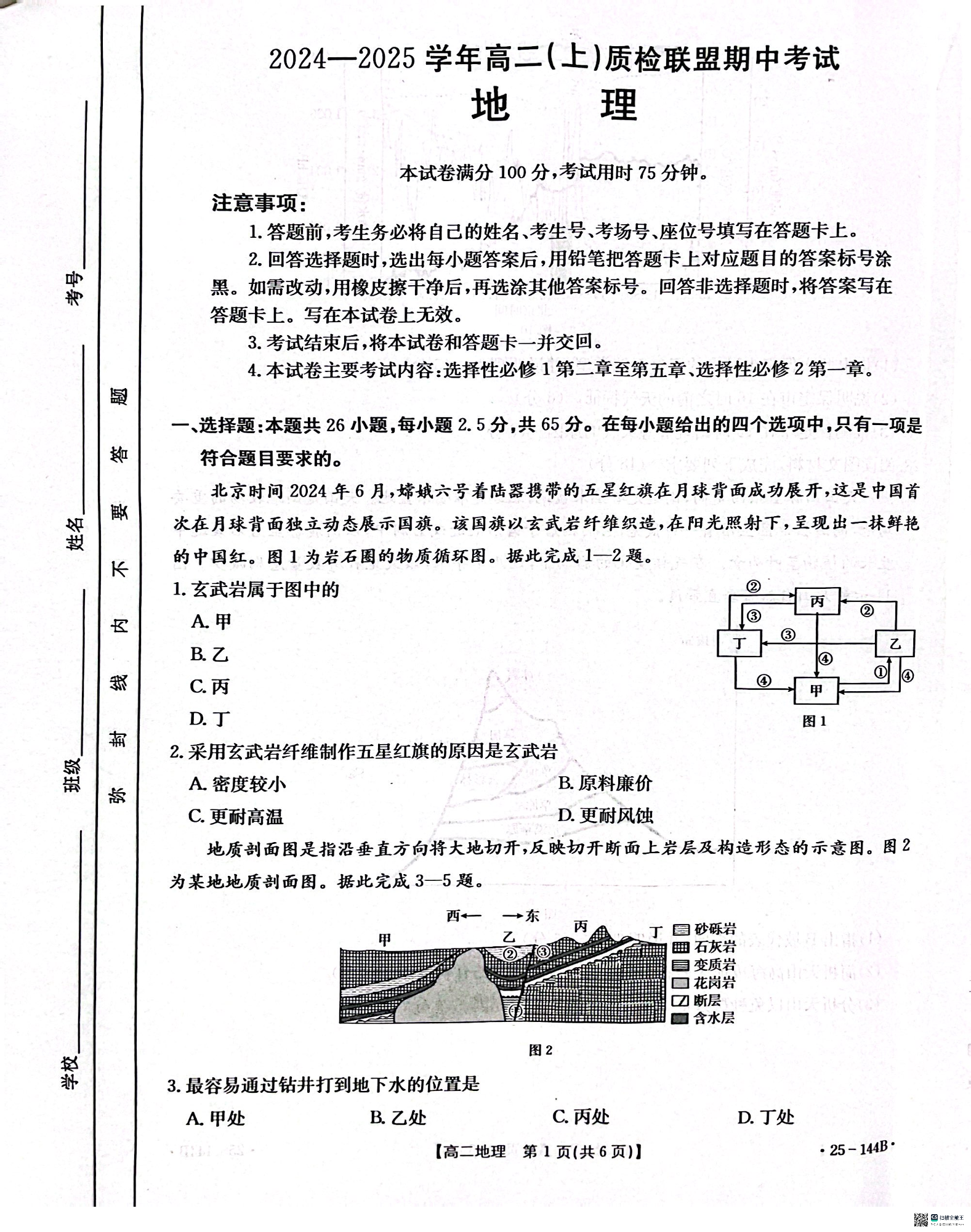 河北省邢台市质检联盟2024-2025学年高二上学期期中考试 地理