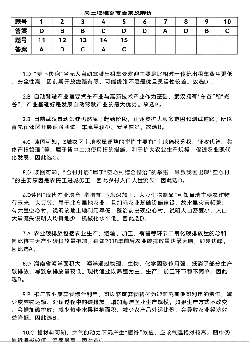 湖北省部分重点中学2025届高三第一次联考 地理答案