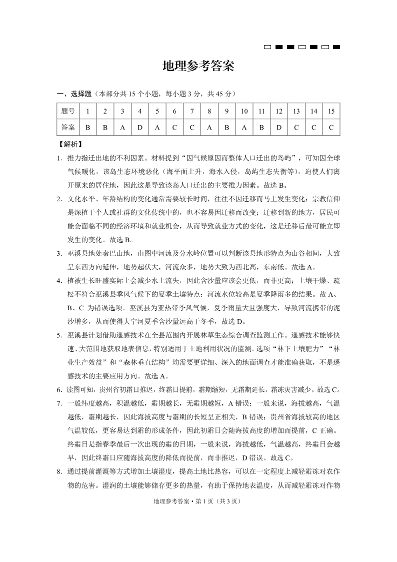 巴蜀中学2025届高考适应性月考卷(三)地理答案