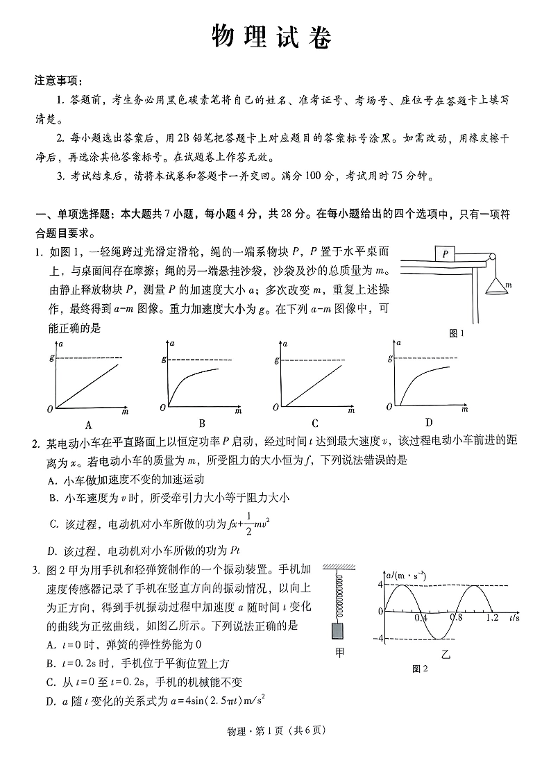 巴蜀中学2025届高考适应性月考卷(三)物理