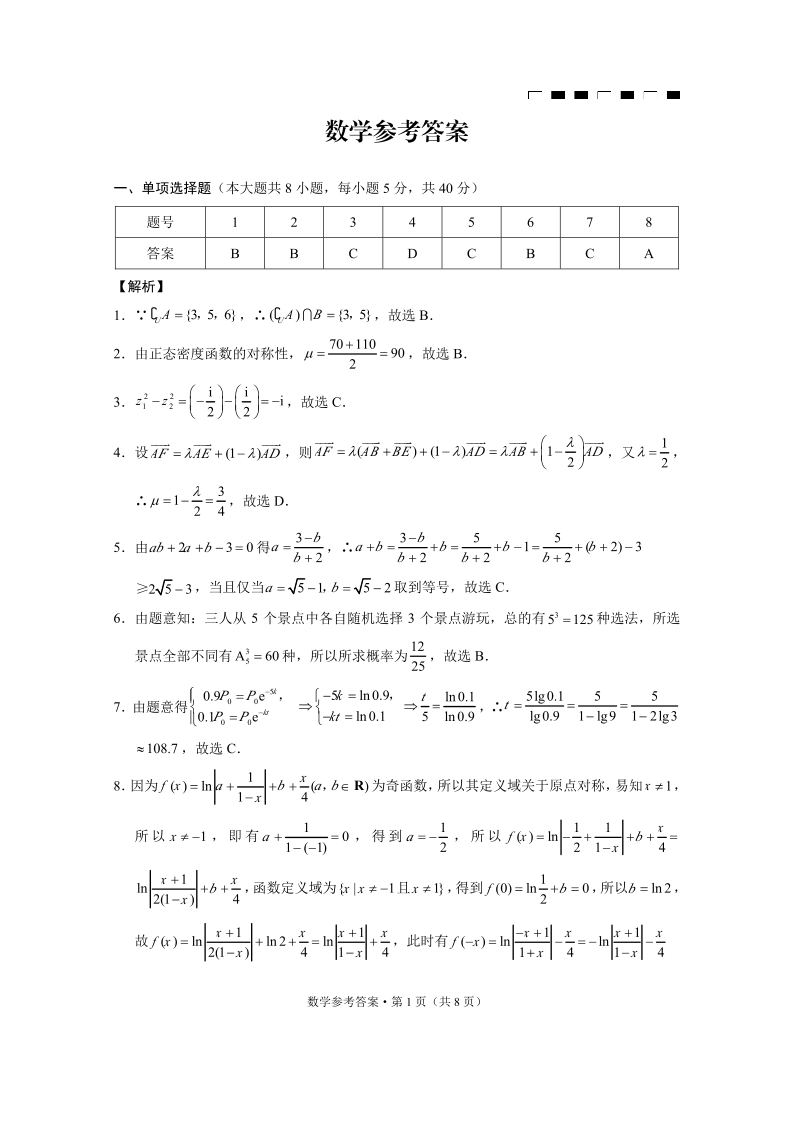巴蜀中学2025届高考适应性月考卷(三)数学答案