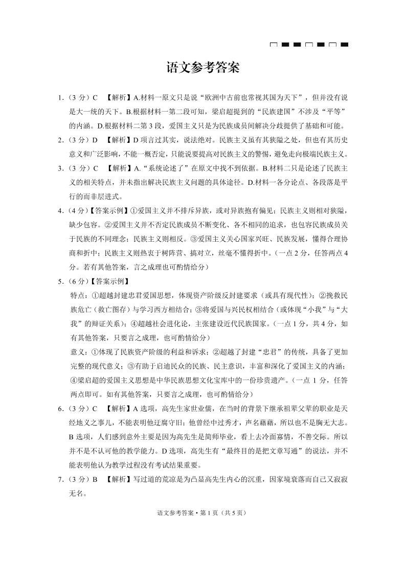 巴蜀中学2025届高考适应性月考卷(三)语文答案