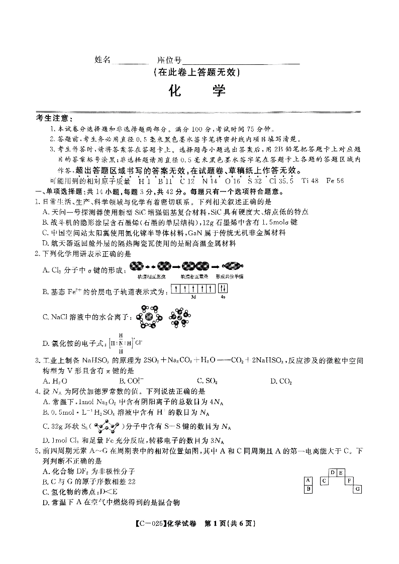 2025届江西省九校联考高三上学期11月期中考试 化学