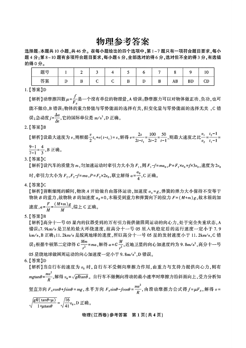 2025届江西省九校联考高三上学期11月期中考试 物理答案