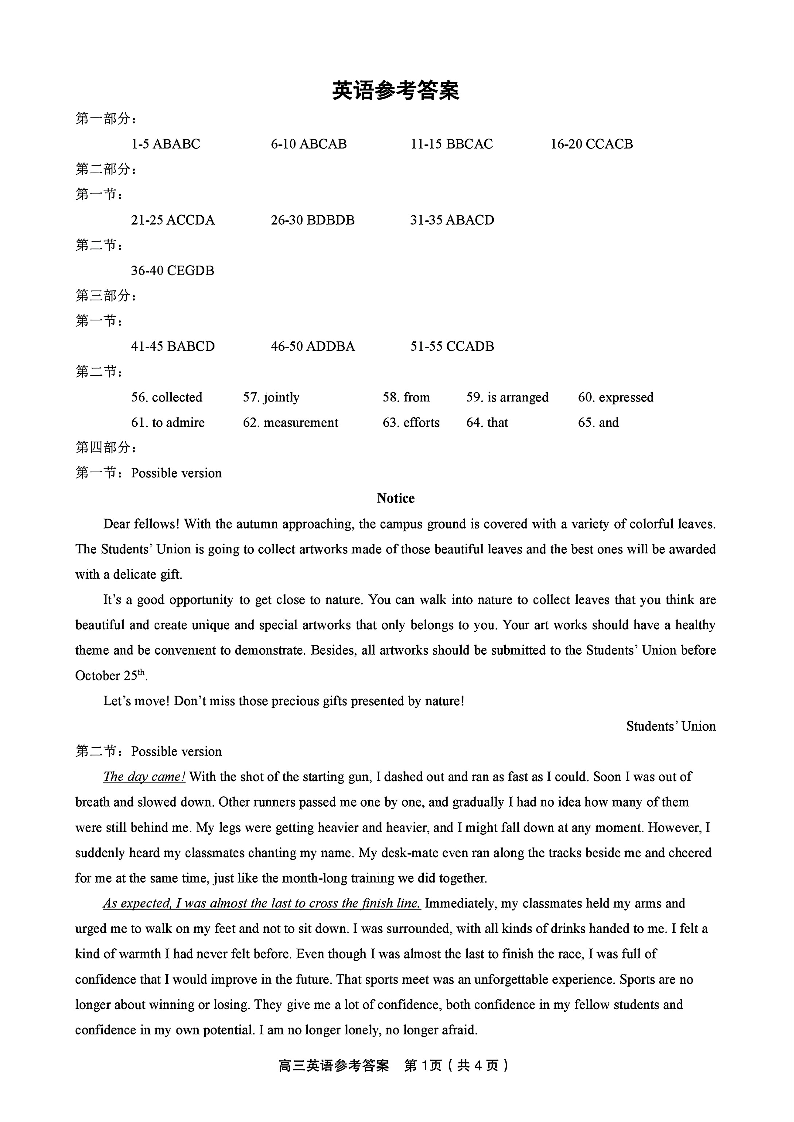 2025届江西省九校联考高三上学期11月期中考试 英语答案