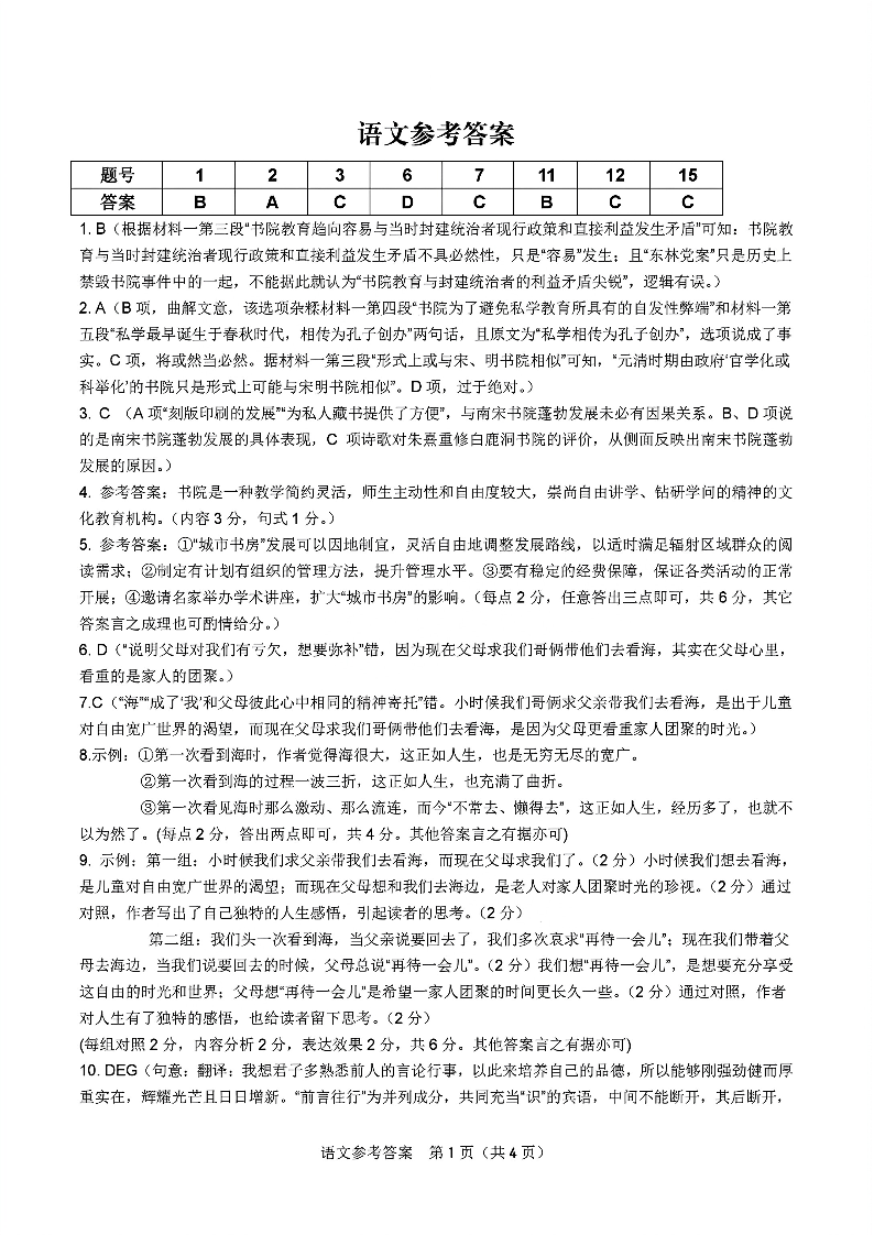 2025届江西省九校联考高三上学期11月期中考试 语文答案