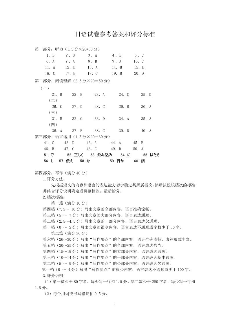 湖北省宜昌协作体2025届高三11月联考 日语答案