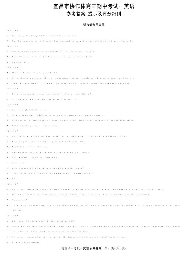 湖北省宜昌协作体2025届高三11月联考 英语答案