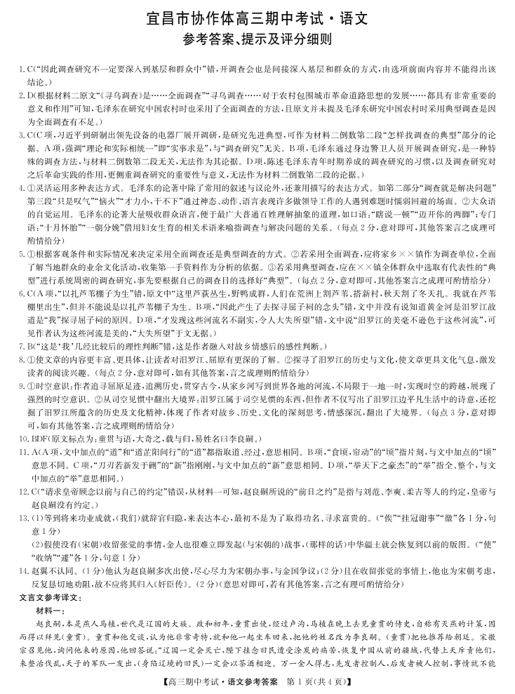 湖北省宜昌协作体2025届高三11月联考 语文答案