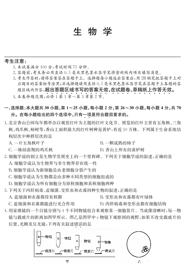 广东省深圳市盟校联盟2024-2025学年高一上学期11月期中考试 生物