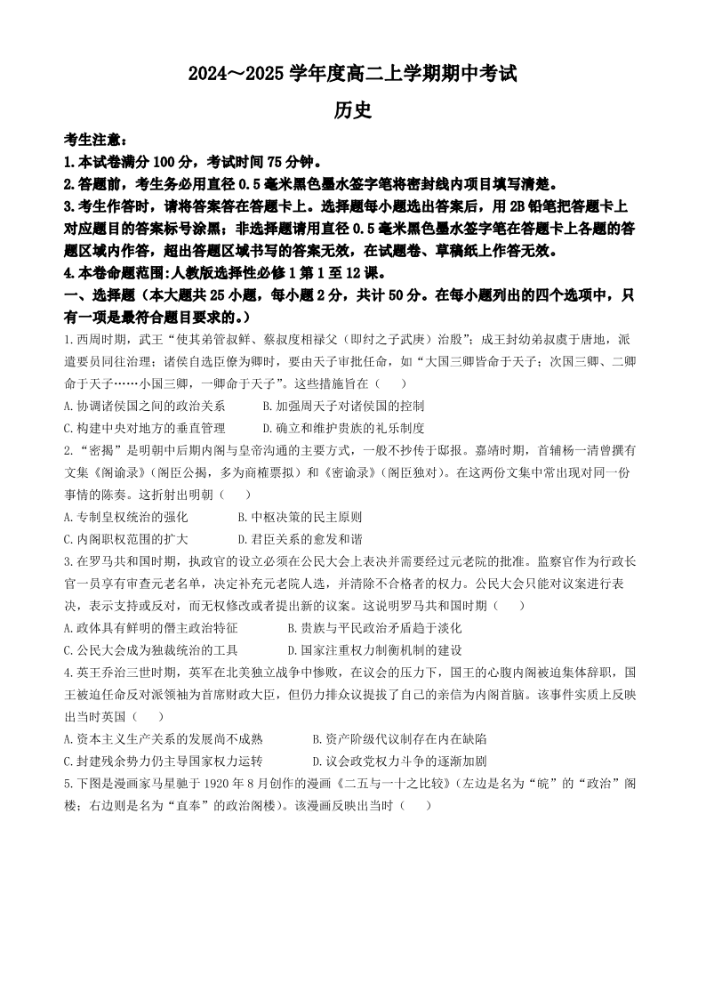 广东省深圳市盟校联盟2024-2025学年高二上学期11月期中考试 历史