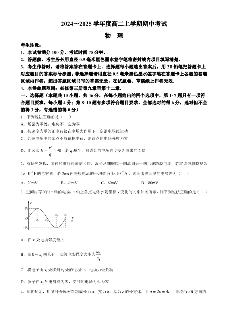 广东省深圳市盟校联盟2024-2025学年高二上学期11月期中考试 物理