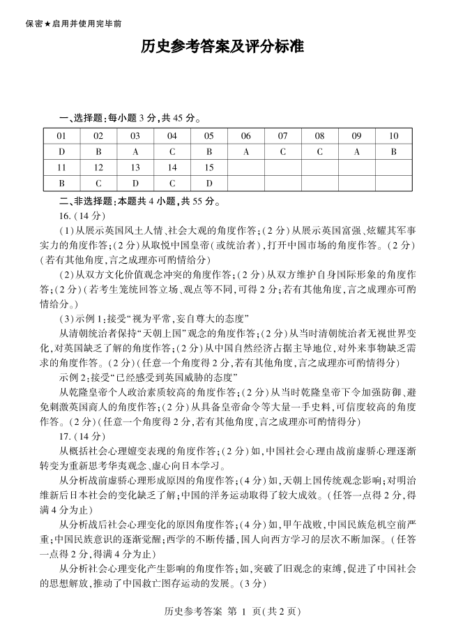 临沂市2025届高三上学期教学质量检测考 历史答案