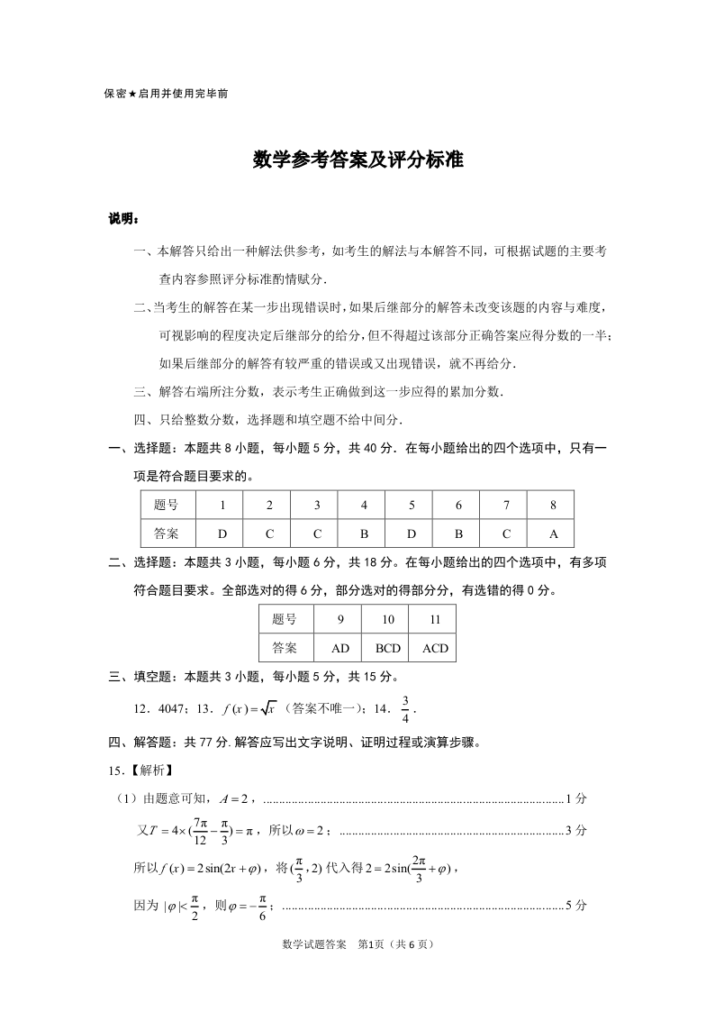 临沂市2025届高三上学期教学质量检测考 数学答案