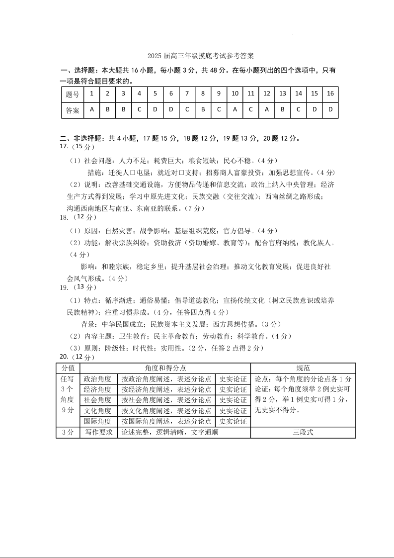 江苏省徐州市2025届高三上学期11月期中考试 历史答案
