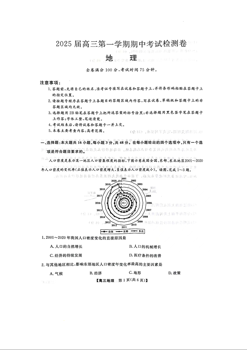 陕西省十七校2024-2025学年高三上学期11月期中联考 地理